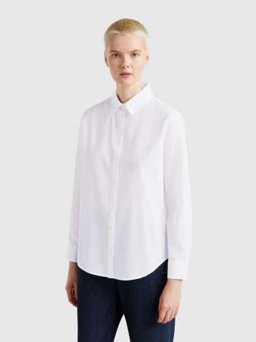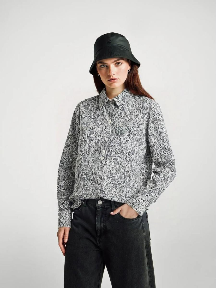 Benetton ženska košulja od pamučnog muslina sa printom, regularnog kroja. Ima duge rukave sa manžetnama na kopčanje, pružajući klasičan i elegantan izgled. Lagani i prozračni materijal čini je idealnom za svakodnevne ili poslovne kombinacije, uz dodatni stil kroz atraktivni print.
