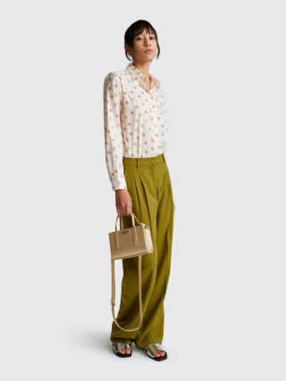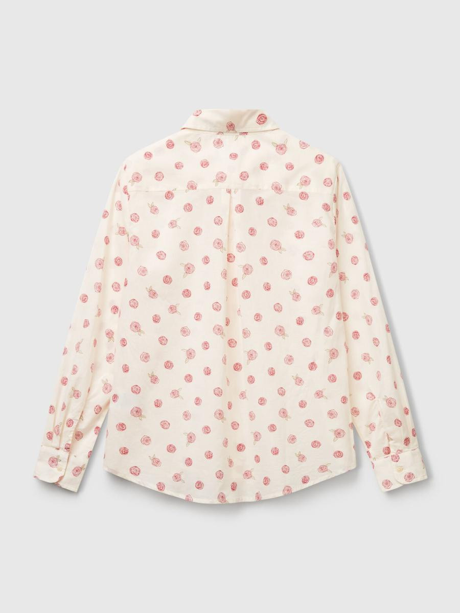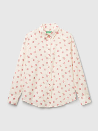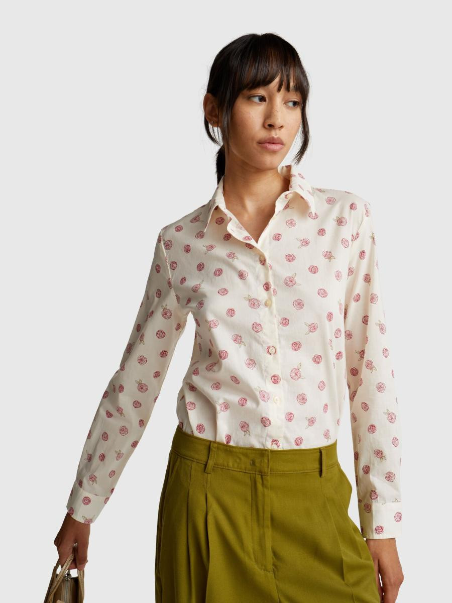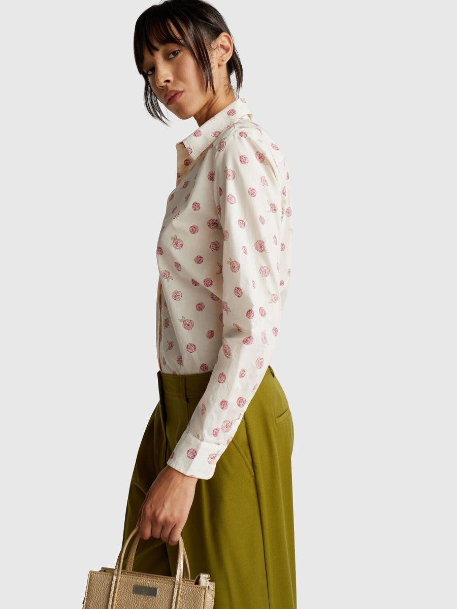 Benetton ženska košulja od pamučnog muslina sa printom, regularnog kroja. Ima duge rukave sa manžetnama na kopčanje, pružajući klasičan i elegantan izgled. Lagani i prozračni materijal čini je idealnom za svakodnevne ili poslovne kombinacije, uz dodatni stil kroz atraktivni print.