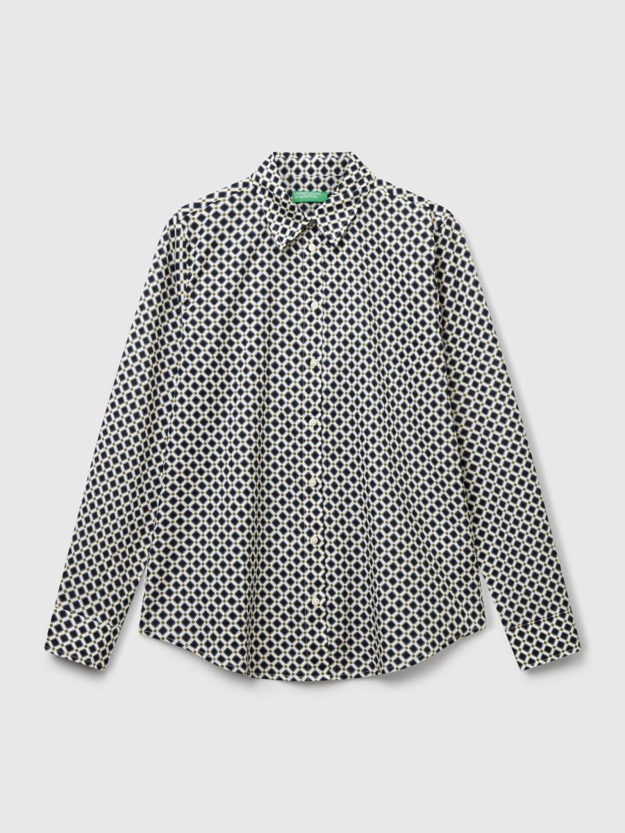 Benetton ženska košulja od pamučnog muslina sa printom, regularnog kroja. Ima duge rukave sa manžetnama na kopčanje, pružajući klasičan i elegantan izgled. Lagani i prozračni materijal čini je idealnom za svakodnevne ili poslovne kombinacije, uz dodatni stil kroz atraktivni print.