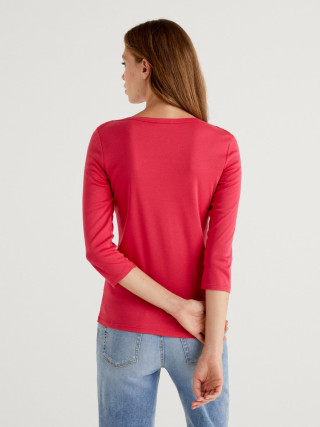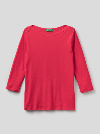 Benetton ženska majica sa čamcem i rukavima 3/4. Napravljena je od visokokvalitetnog pamuka dugih vlakana koji je udoban i izdržljiv.