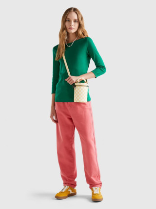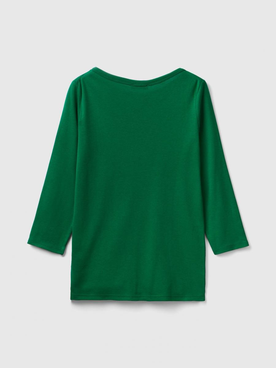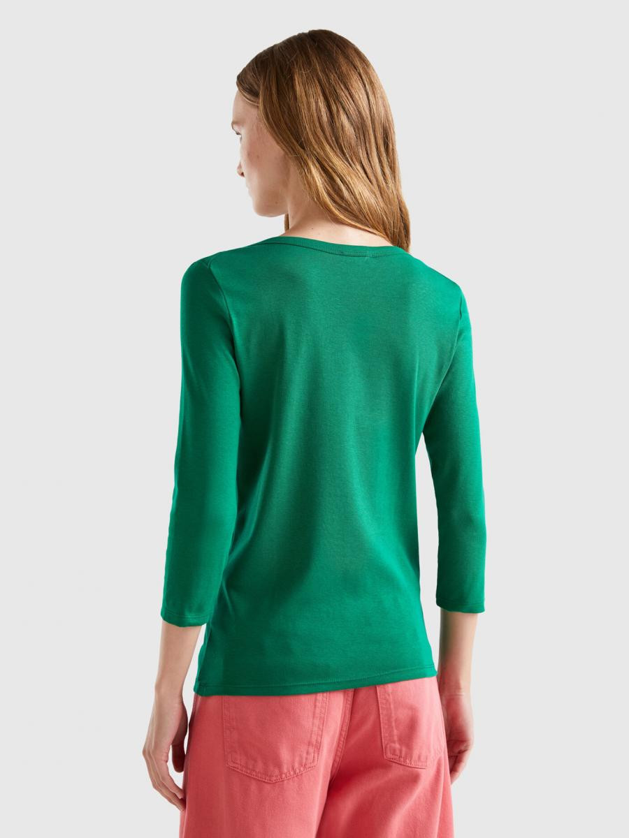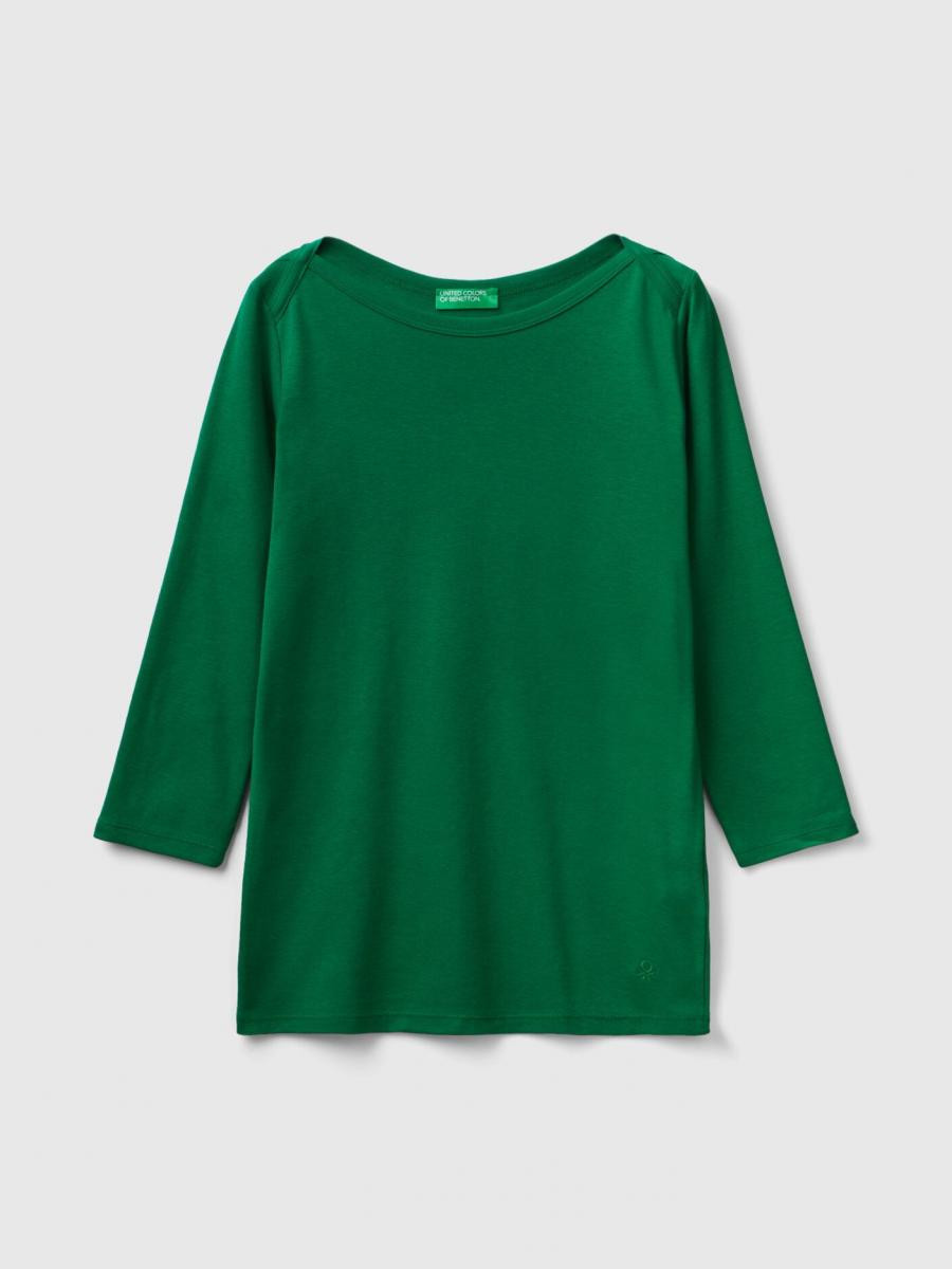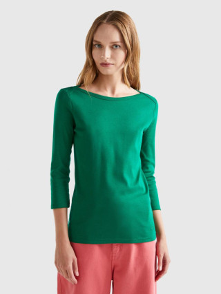 Benetton ženska majica sa čamac izrezom i rukavima 3/4. Jednostavna se nosi, napravljena je od visokokvalitetnog pamuka dugih vlakana koji je udoban i izdržljiv.