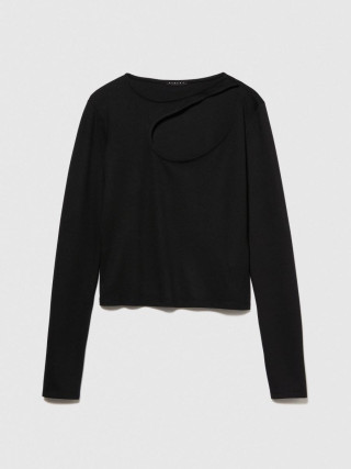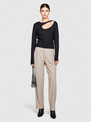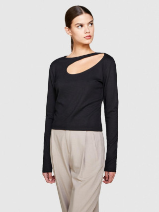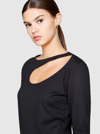Sisley ženska kratka majica od mešavine viskoze. Okrugli izrez, motiv otvora na prednjoj strani i dugi rukavi.