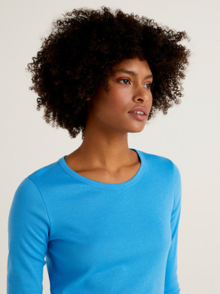 Benetton ženska majica dugih rukava sa okruglim izrezom jednostavnog kroja. Napravljena od visokokvalitetnog pamuka dugih vlakana.