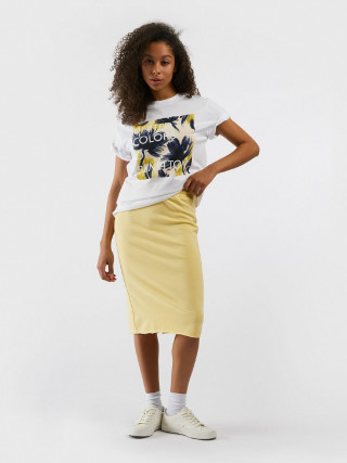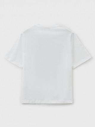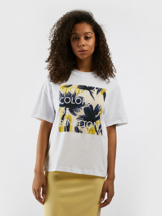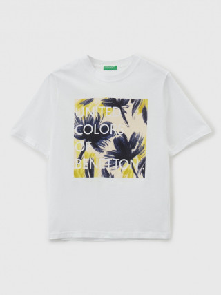 Benetton ženska majica sa okruglim izrezom kratkih rukava od čistog pamuka sa čvrstim dodirom. Moderan kroj sa blago spuštenim ramenima. Cvetni print sa logom na prednjoj strani.