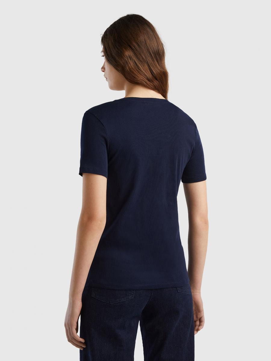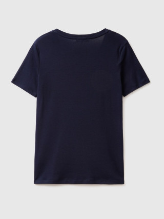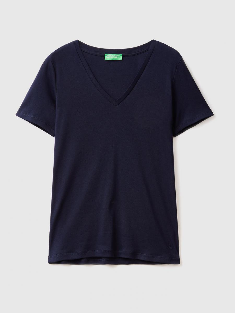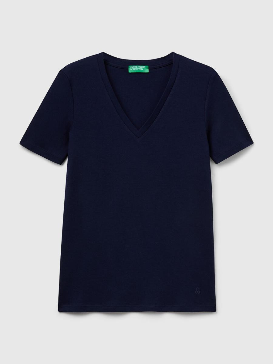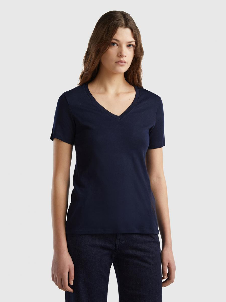 Benetton ženska majica kratkih rukava sa V-izrezom i izvezenim logom Benetton na levom rukavu. Napravljena od prestižnog pamuka sa dugim vlaknima koji nudi još veću elastičnost, otpornost i mekoću.