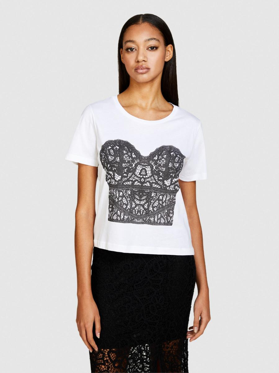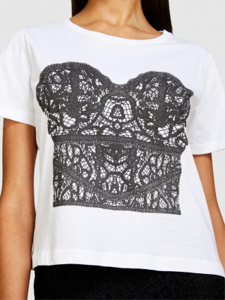 Sisley ženska regular fit majica od 100% organskog pamuka. Okrugli izrez, kratki rukavi i aplikacija na prednjoj strani.
