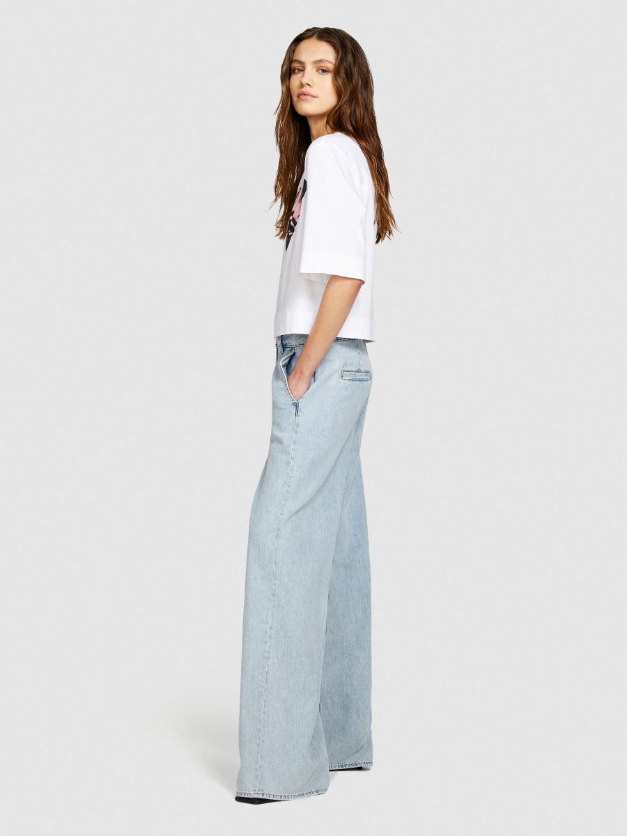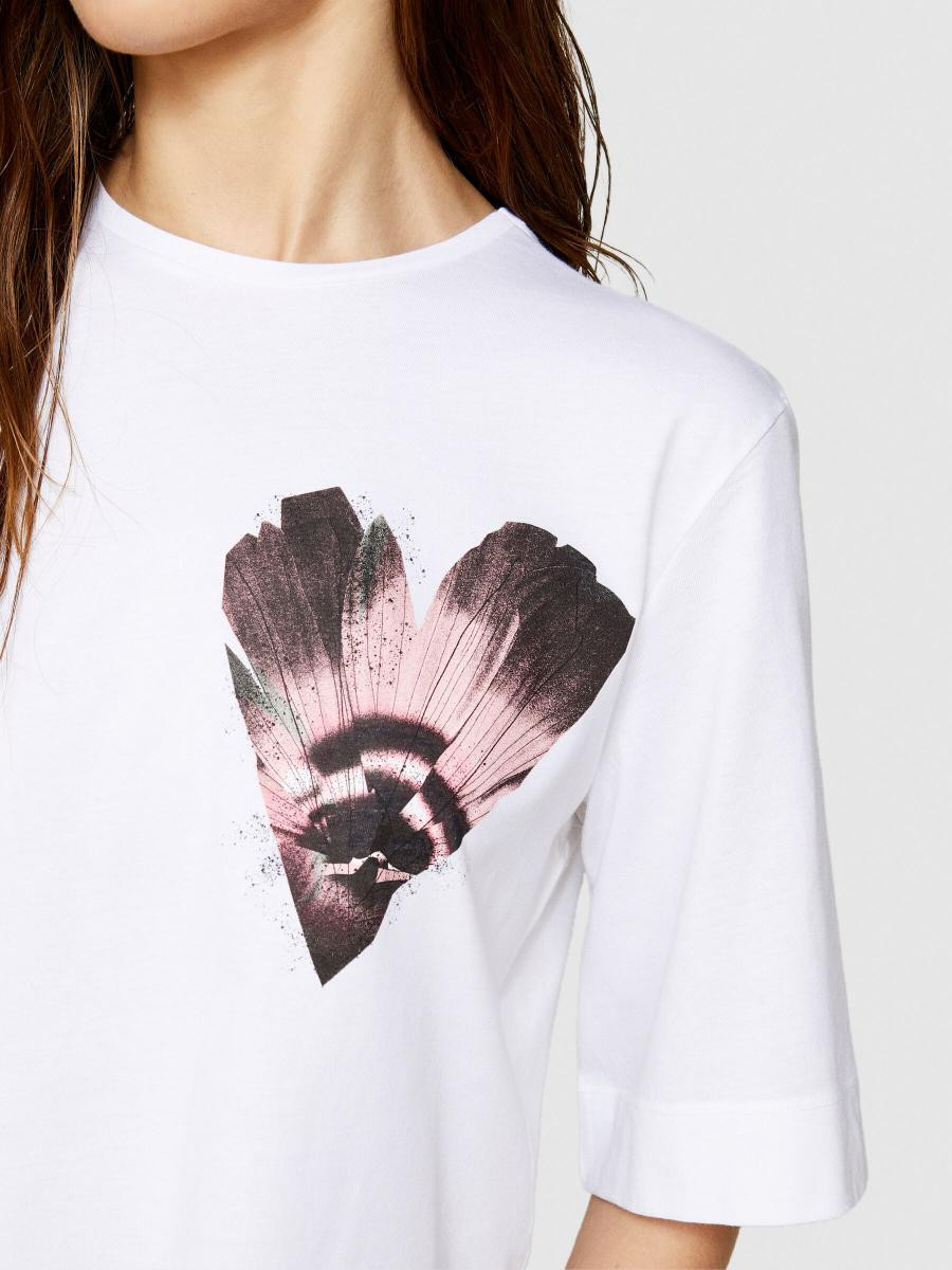 Sisley ženska boxy fit majica od 100% organskog pamuka. Okrugli izrez, kratki rukavi sa spuštenim ramenima i print postavljen na prednjoj strani.