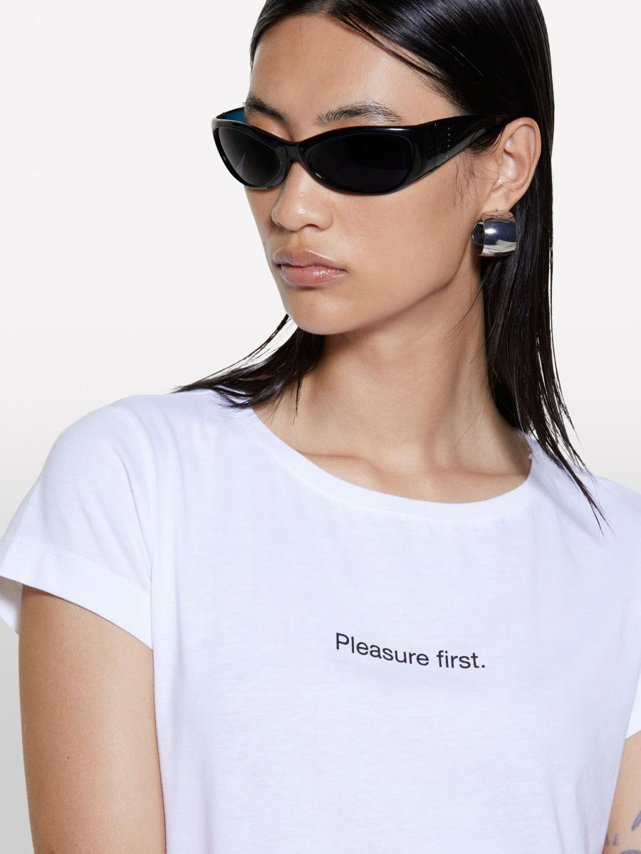 Sisley ženska majica regular fit kroja od 100% organskog pamuka, sa okruglim izrezom, kratkim rukavima i štampom na prednjoj strani.