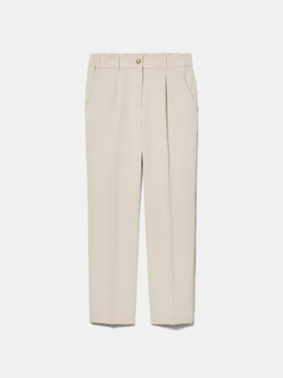 Sisley ženske jogger pantalone od rastegljive viskozne mešavine. Prednji nabori, ispeglan nabor duž nogavice i elastična traka pozadi u struku.