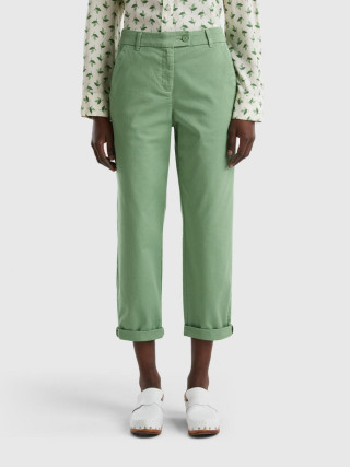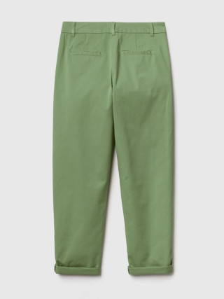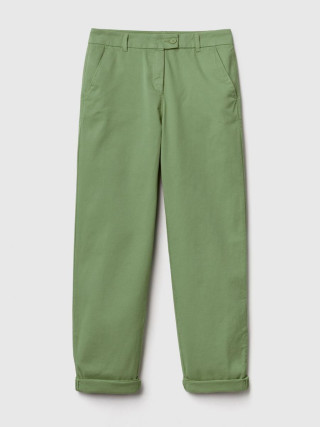 Benetton pantalone za ženu, udobni elastićni pamuk. Chino model sa podesivim strukom i opuštenim nogavicama. Prednji džepovi i mali džepovi na zadnjem delu.
