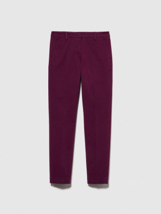 Sisley ženske chino pantalone tankog kroja od rastegljivog pamučnog gabardina. Peglani nabor duž nogavice, dva kosa džepa na prednjoj strani i dva džepa sa kopčom na zadnjoj strani.