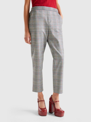 Benetton ženske pantalone od mešavine rastegljive viskoze. Prorezana i sužena nogavica. Udobno krojene zahvaljujuc´i struku sa unutrašnjom elastičnom trakom na zadnjim i prednjim džepovima. Klasičan stil, obnovljen sa modernim obrtom.