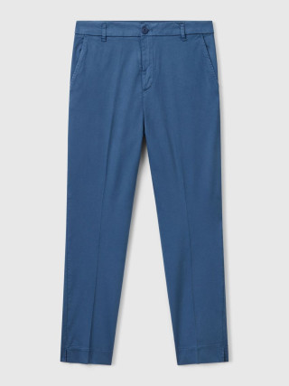 Benetton ženske pantalone u chino stilu od rastegljivog pamuka poput pikea. Slim fit model blago kratkog kroja s prorezima na donjem delu nogavica. Prednji džepovi, zadnji sa naborima i džepovi sa dugmetom. Neophodne i svestrane, nosive uz patike ili štikle za svečanije prilike.