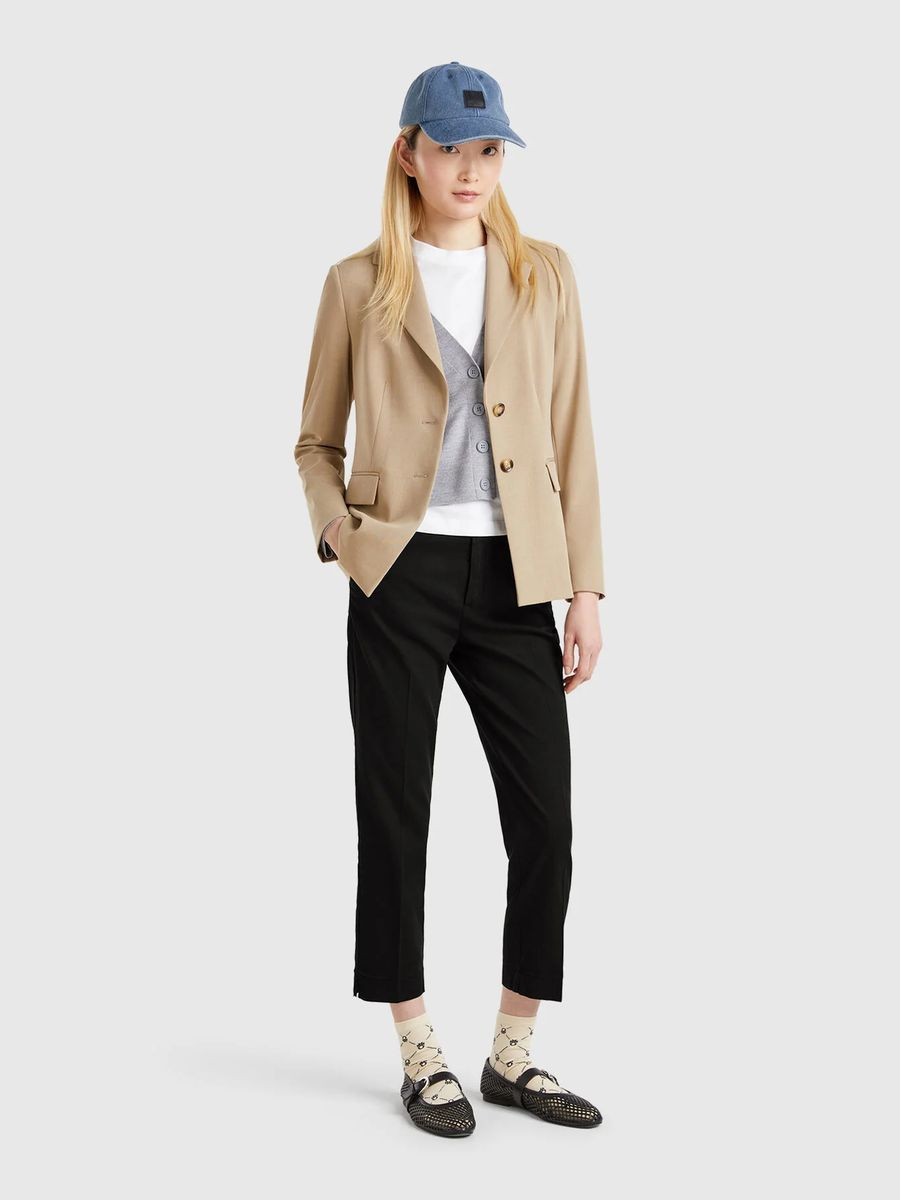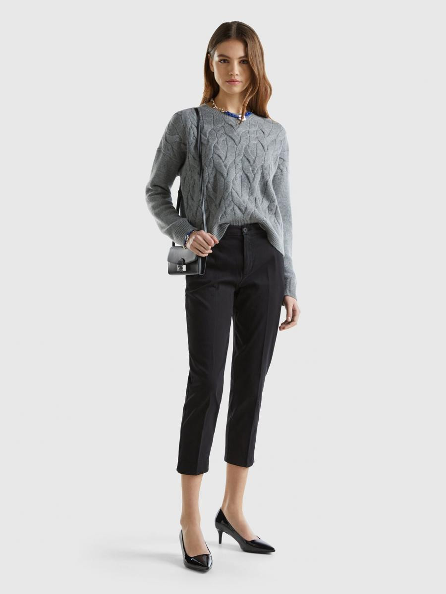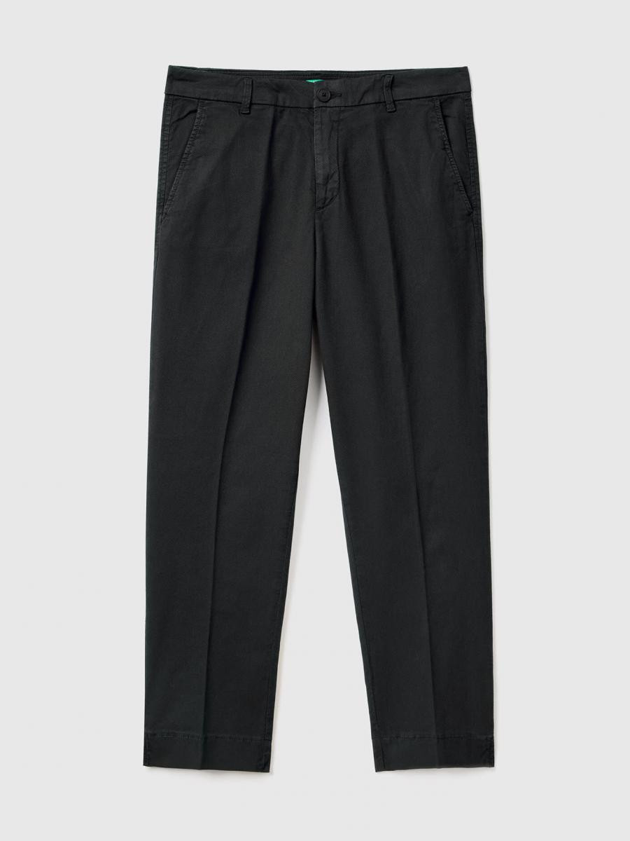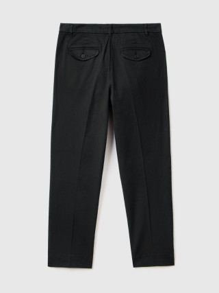 Benetton ženske pantalone u chino stilu od rastegljivog pamuka poput pikea. Slim fit model blago kratkog kroja s prorezima na donjem delu nogavica. Prednji džepovi, zadnji sa naborima i džepovi sa dugmetom. Neophodne i svestrane, nosive uz patike ili štikle za svečanije prilike.