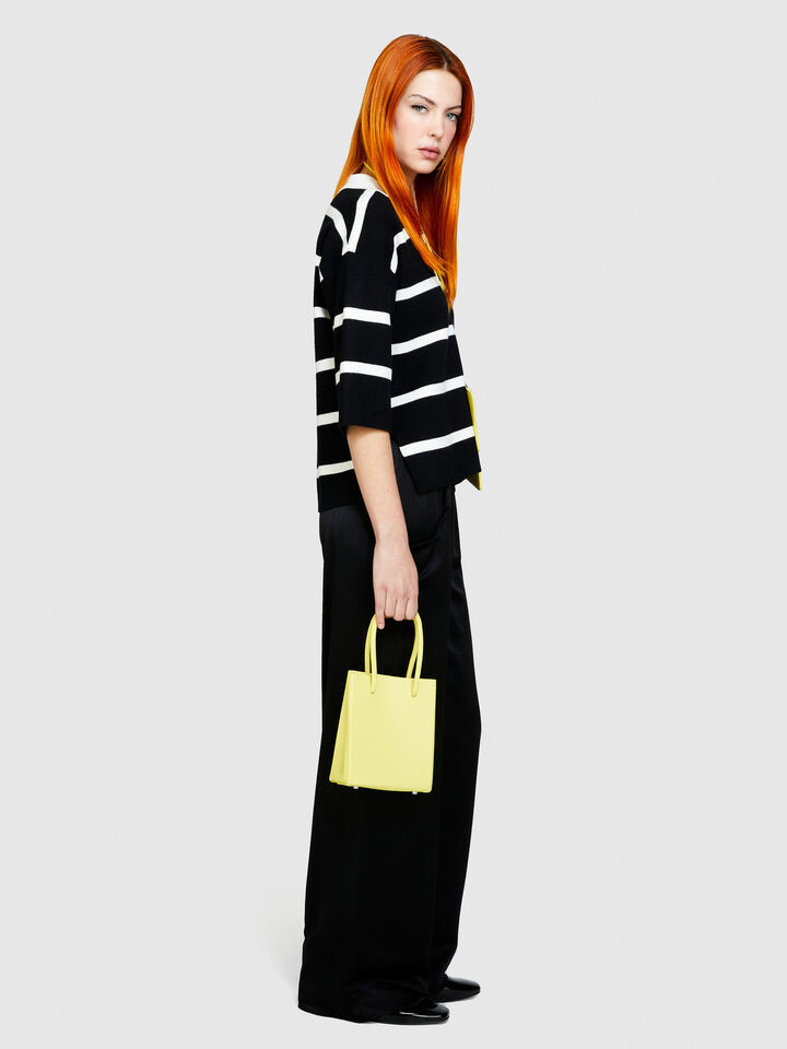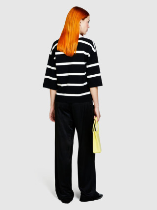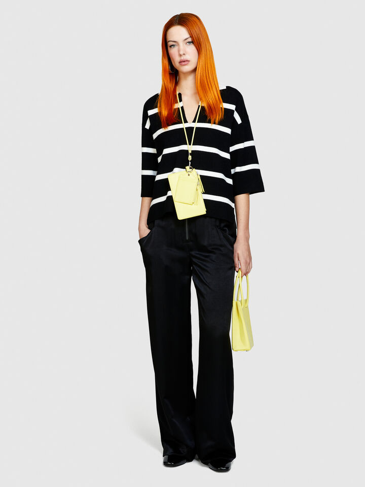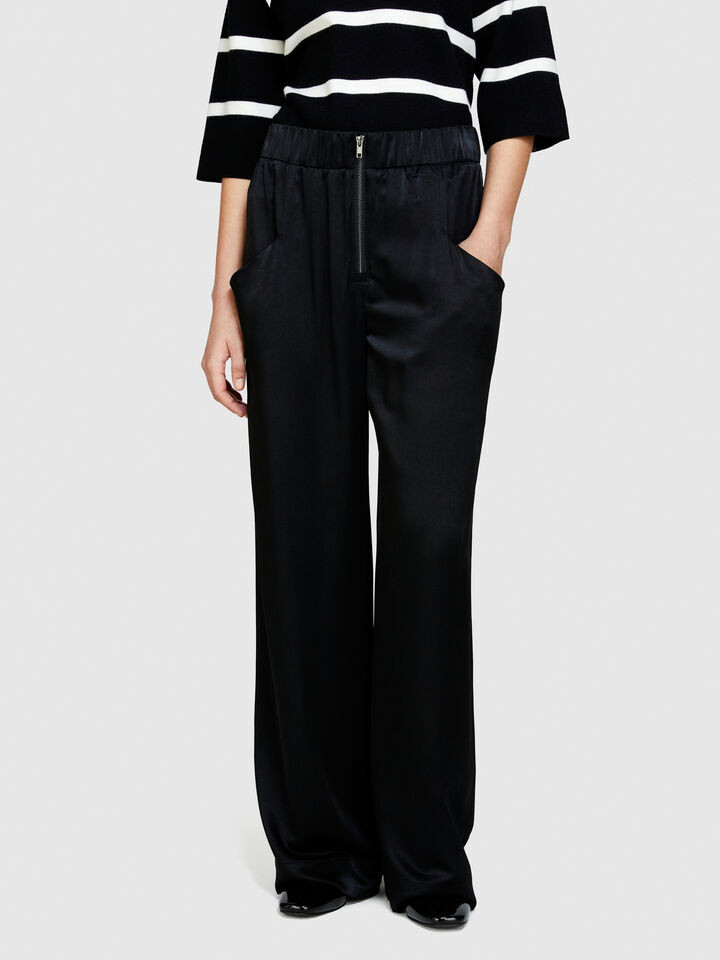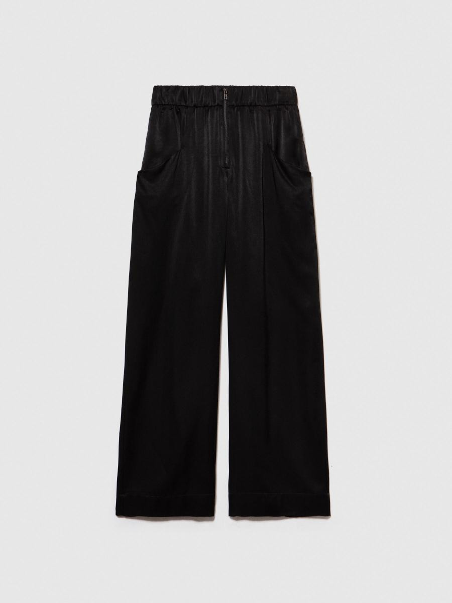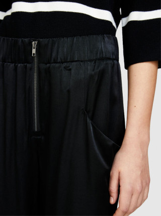 Sisley ženske pantalone širokog kroja od viskoznog satena. Elastičan struk, prednji patent zatvarač i dva džepa na nogavicama.