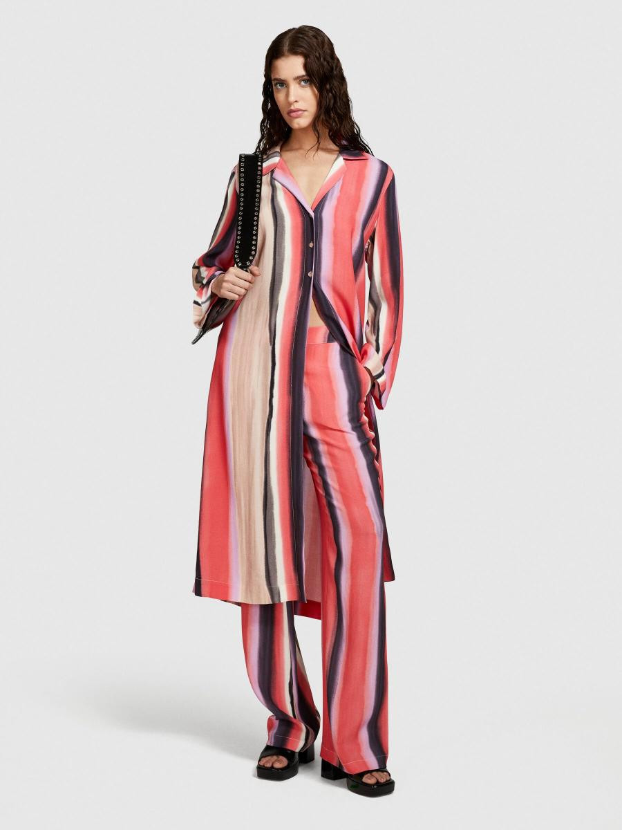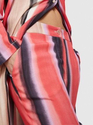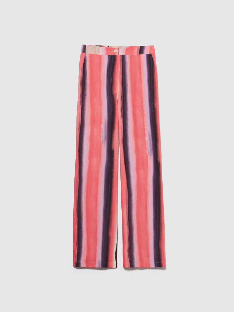 Sisley ženske pantalone od tečne 100% štampane viskoze, sa elastičnim strukom, dva džepa na prednjoj strani i blago proširenim donjim delom.