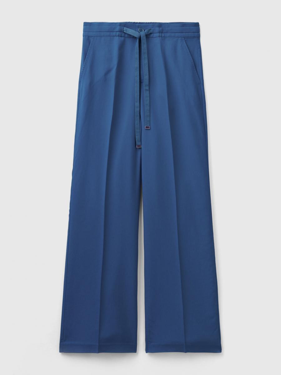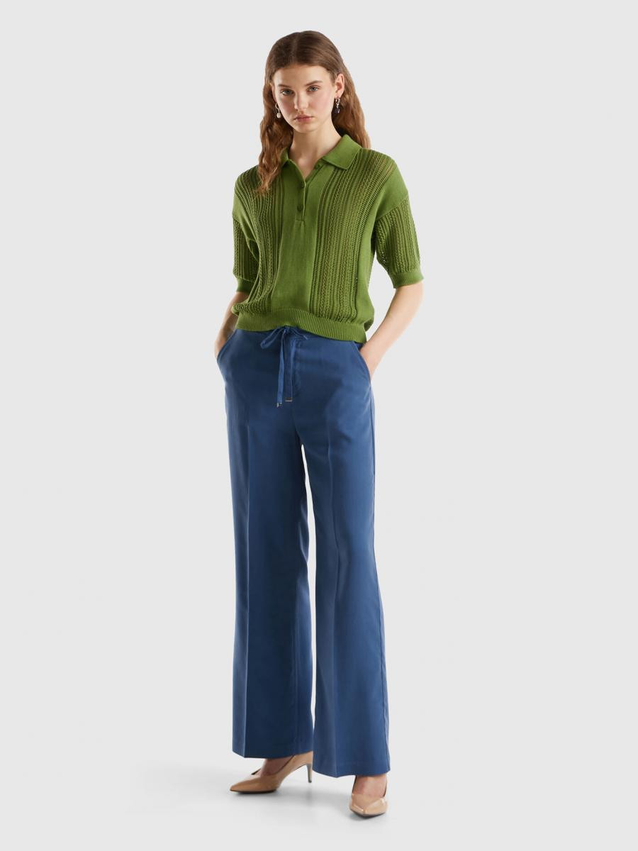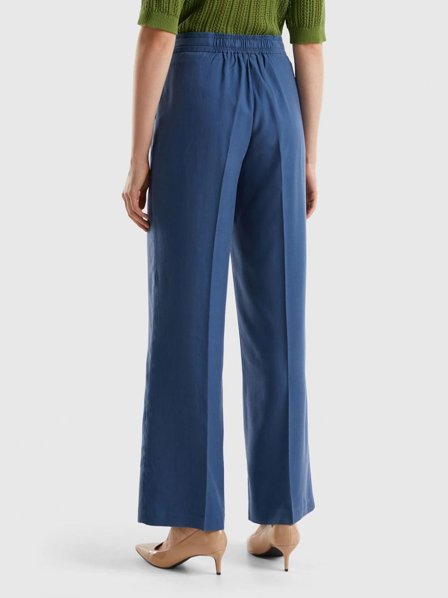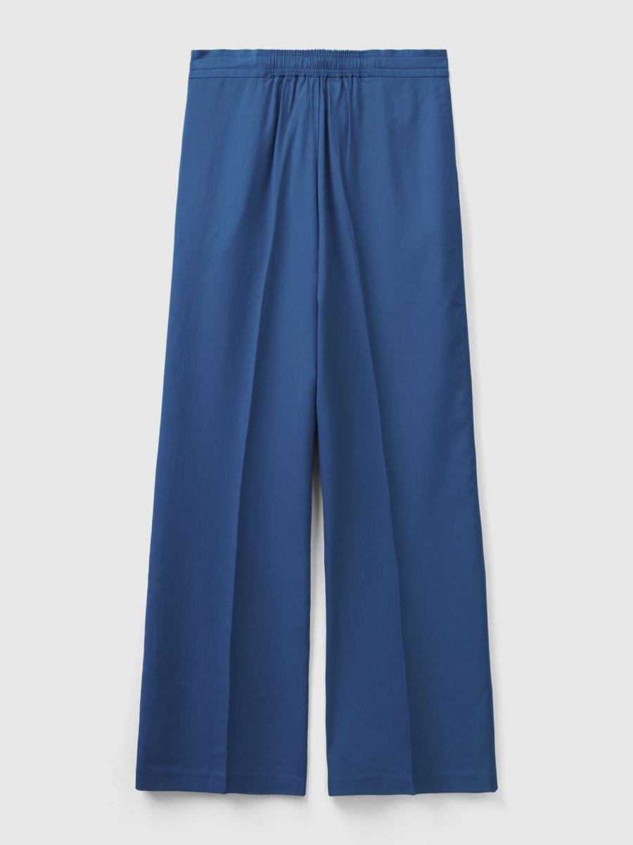 Benetton ženske pantalone od lepršavog, laganog liocela, sa ravnim nogavicama i centralnim naborom. Struk sa elastičnom trakom na leđima i vezicom, praktično kopčanje sa patent zatvaračem i dugmetom. Čist dizajn i moderan kroj, za savremeni izgled.