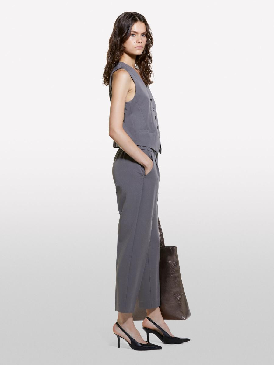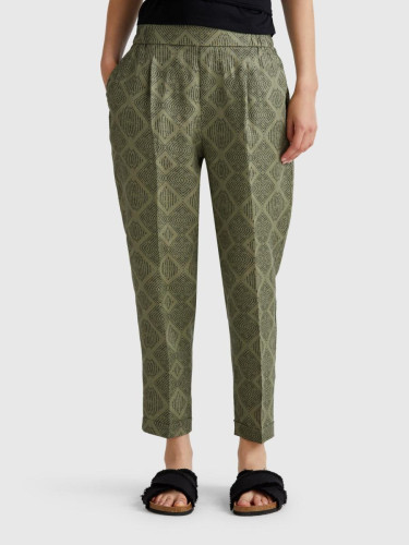 Sisley ženske jogger pantalone od rastegljive viskozne mešavine. Prednji nabori, ispeglan nabor duž nogavice i elastična traka pozadi u struku.
