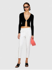 Sisley ženske cigaret pantalone od rastegljivog pamučnog kepera. Pritisnuti nabor duž nogavice, patent zatvarač i dugmad, dva koso džepa na prednjoj strani i dva džepa sa rubom pozadi.