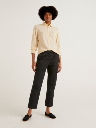 Benetton pantalone za ženu, udobni elastićni pamuk. Chino model sa podesivim strukom i opuštenim nogavicama. Prednji džepovi i mali džepovi na zadnjem delu.