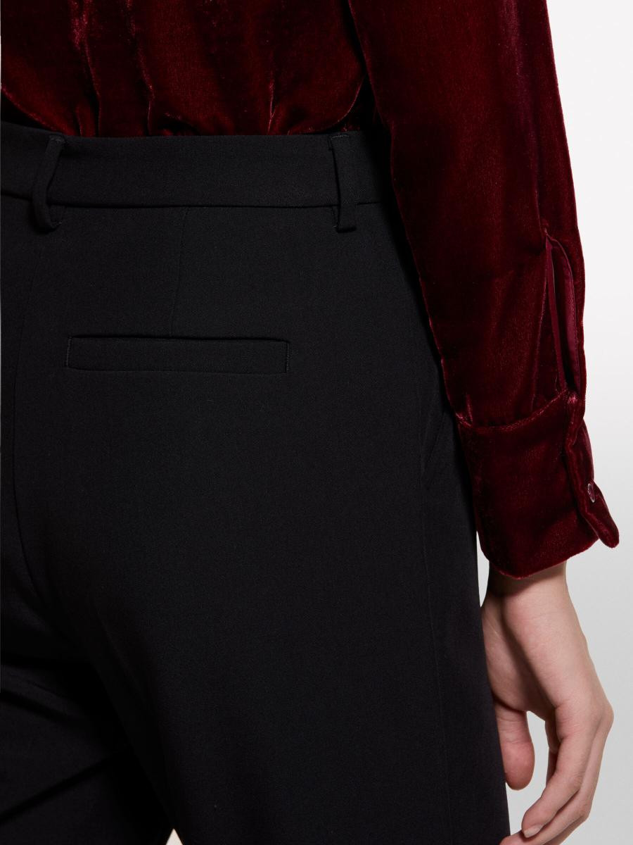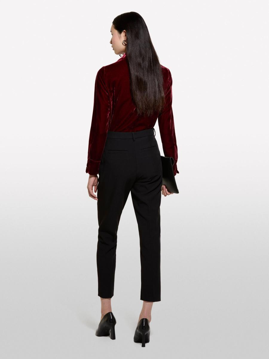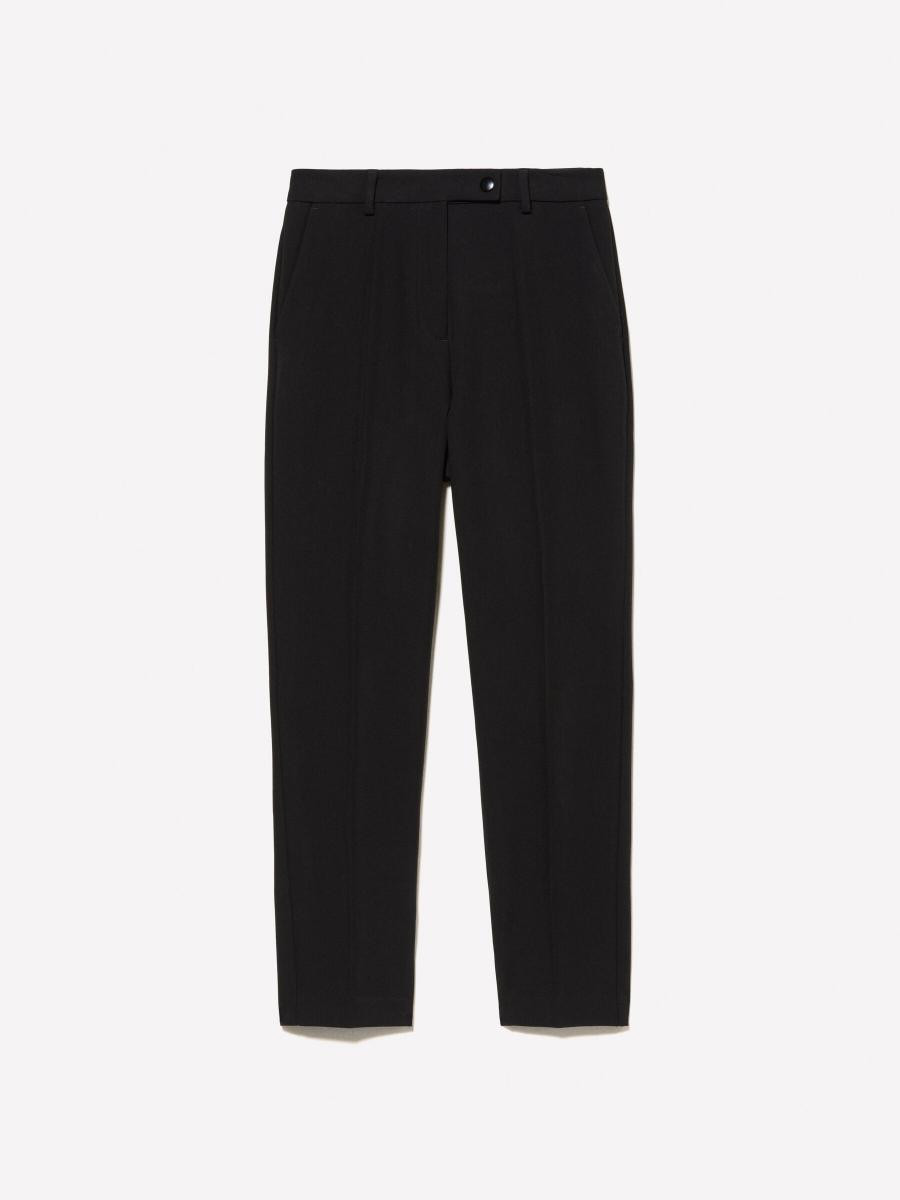 Sisley ženske pantalone visokog struka od rastegljive viskozne mešavine kepera. Peglani nabor duž nogavica, rajsferšlus i kopčanje na dugmad sa produženim remenom, dva džepa sa izrezima na prednjoj strani i dva džepa sa rubom pozadi.
