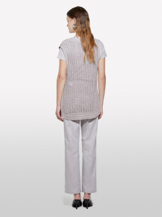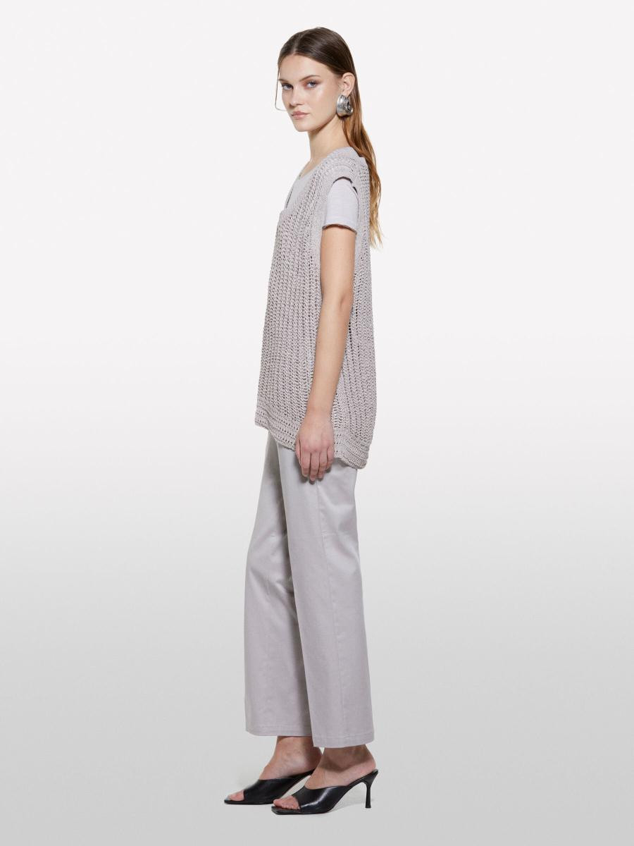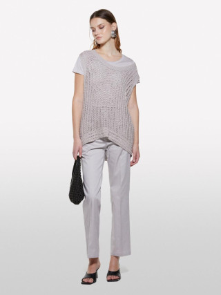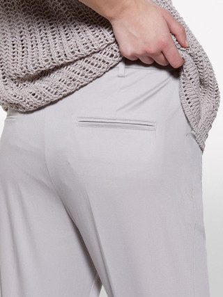 Sisley ženske cigaret pantalone od rastegljivog pamučnog kepera. Pritisnuti nabor duž nogavice, patent zatvarač i dugmad, dva koso džepa na prednjoj strani i dva džepa sa rubom pozadi.