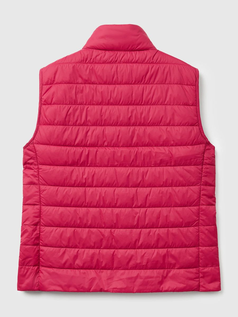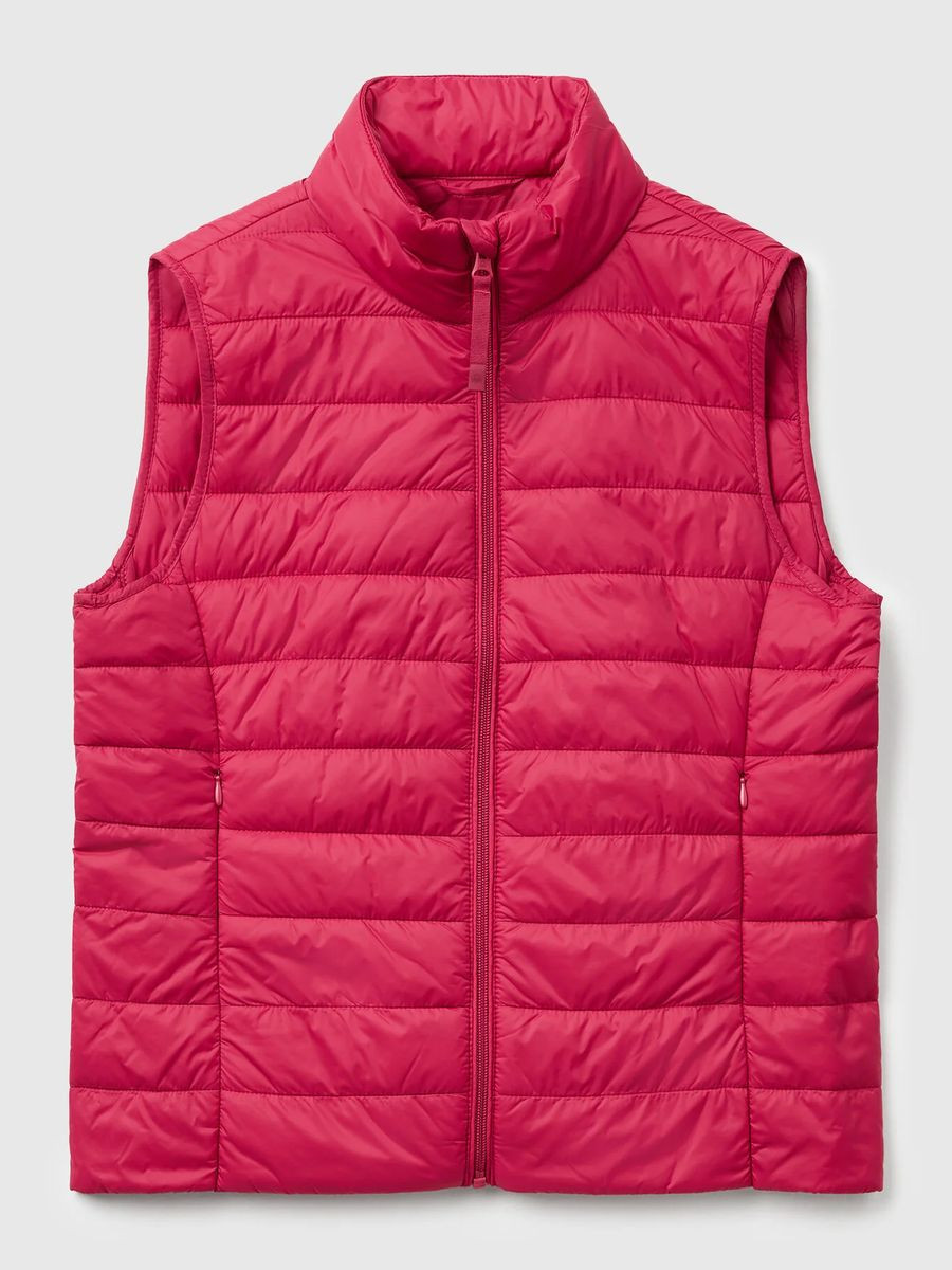 Benetton ženski puf prsluk od najlona Rain Defender slim fit kroja. Stojeća kragna, prednji patentni zatvarač, umetnuti bočni džepovi.