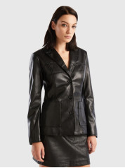 Benetton ženska jakna sa jednorednim kopčanjem u stilu sakoa od meke imitacije kože u izgledu napa. Podstava od mešavine viskoze, lepršavi kroj, klasična kragna sa reverom. Kopčanje sa dugmićima, džepovi postavljeni sa prednje strane, prorez na sredini zadnje strane.