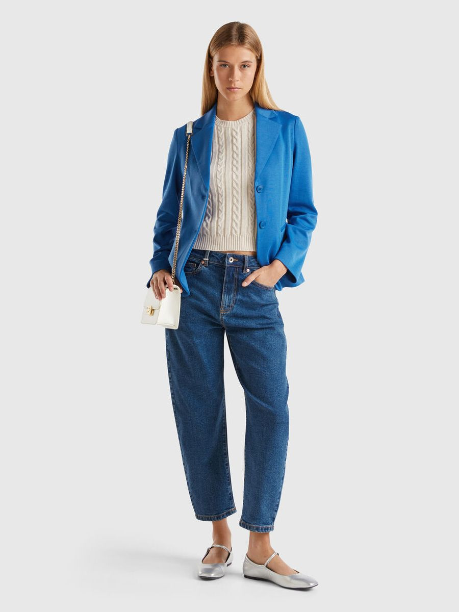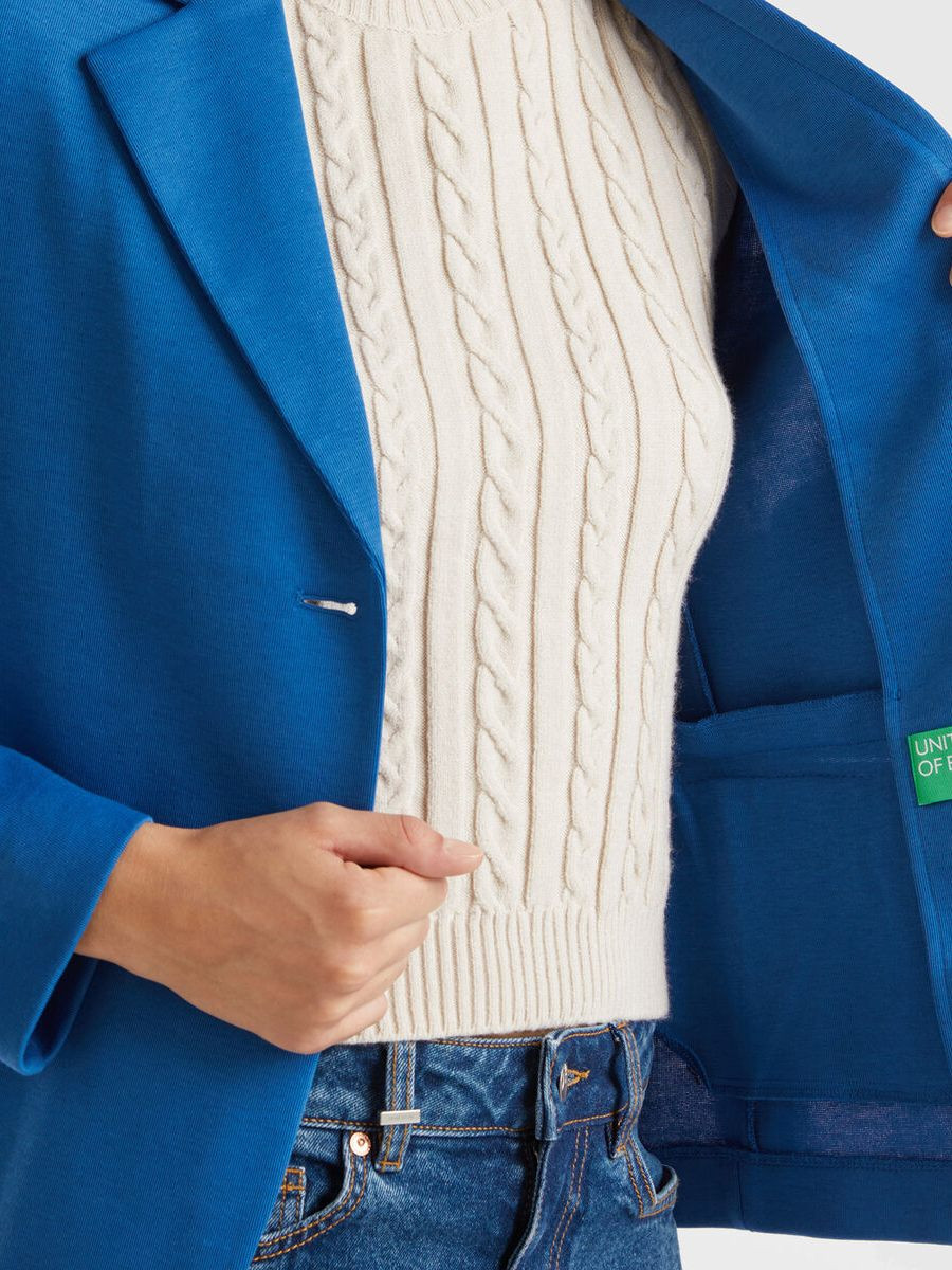 Benetton ženski sako od meke pamučne tkanine, sa kragnom na rever i otvaranjem na dva dugmeta. Dugi rukavi i džepovi sa rubom na prednjoj strani. Minimalnog stila, idealno za grad.