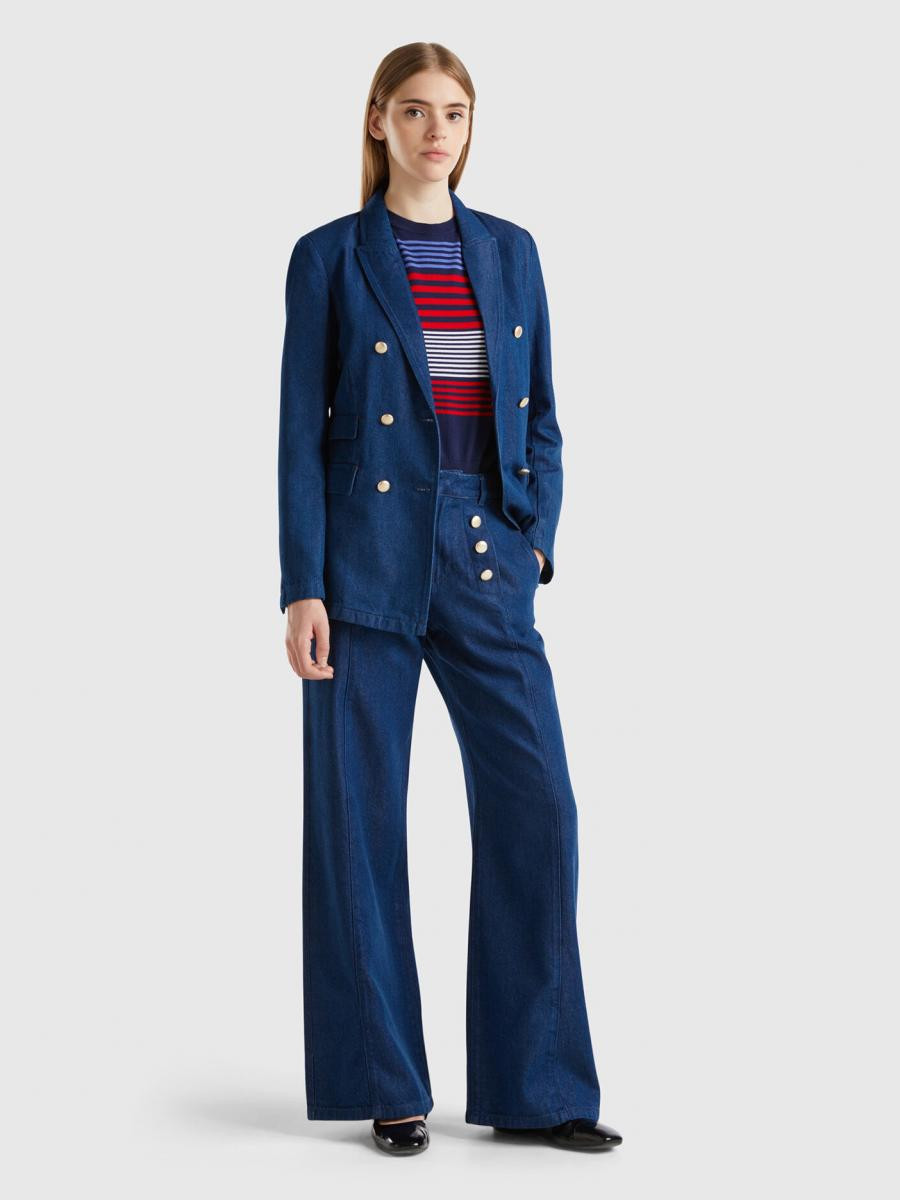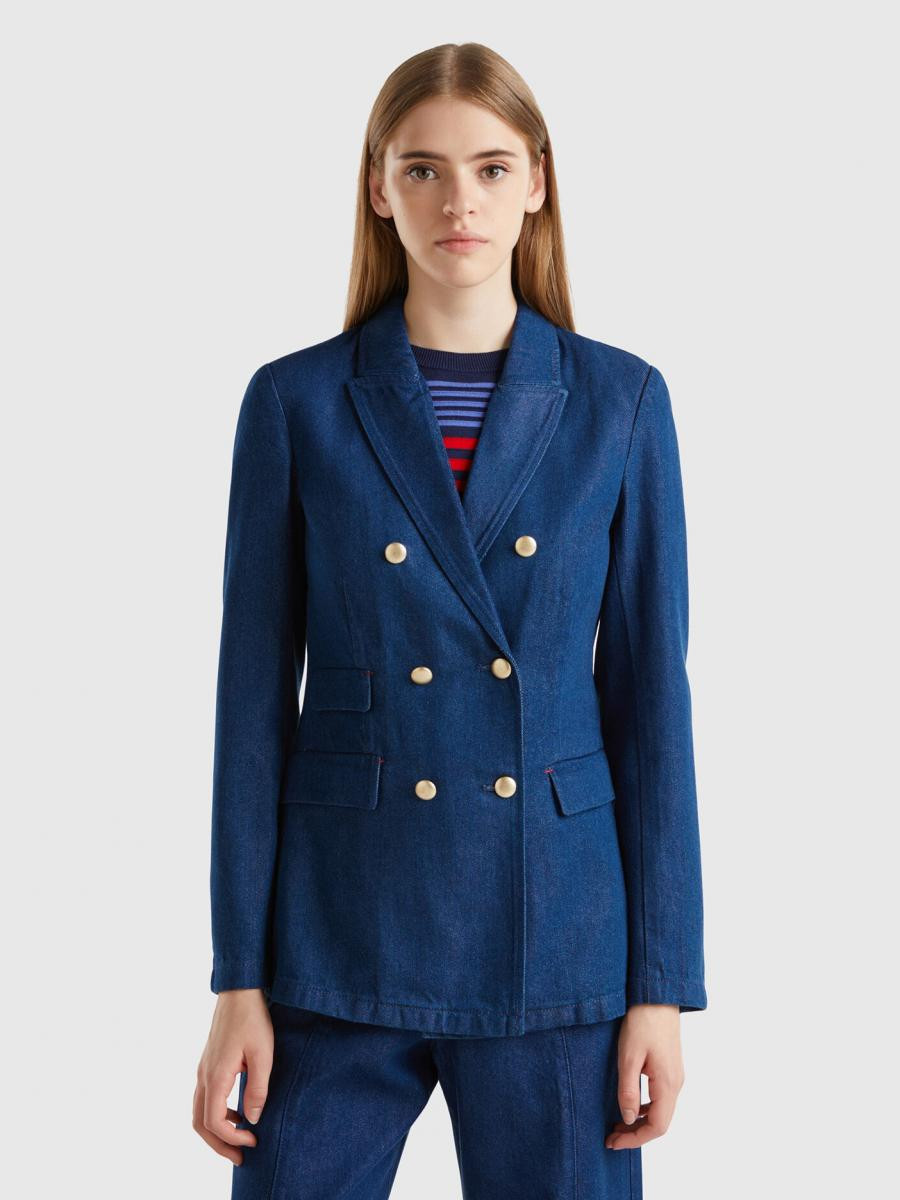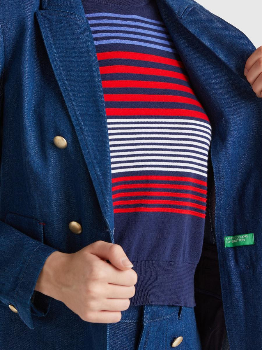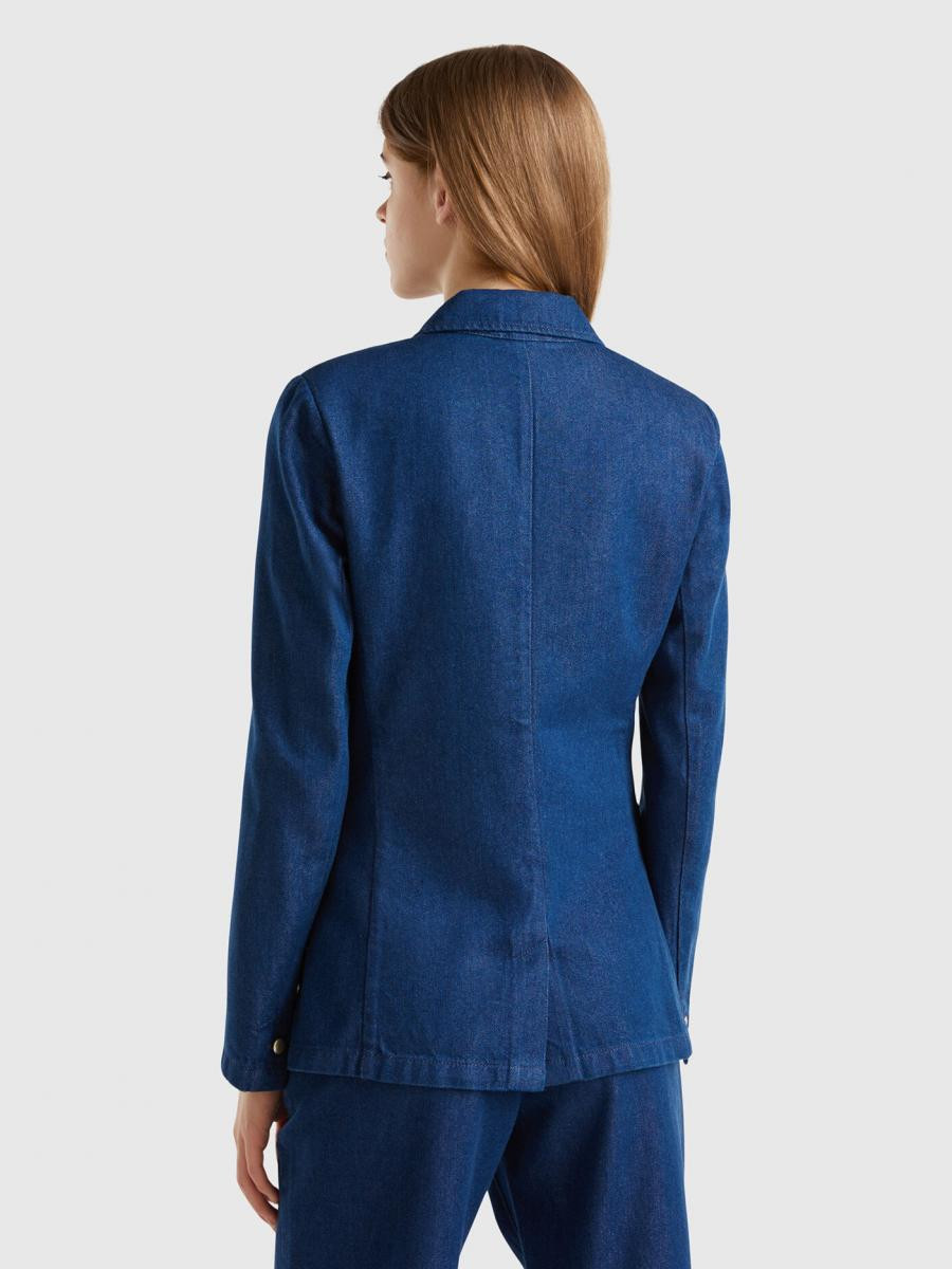 Benetton ženski lepršavi sako sa dugim rukavima. Vrat sa šiljastim reverima i džepovima sa preklopom na prednjoj strani. Napravljen od mešavine pamuka i viskoze, proizveden od drveta iz sertifikovanih šuma i poštujući najviše ekološke standarde.