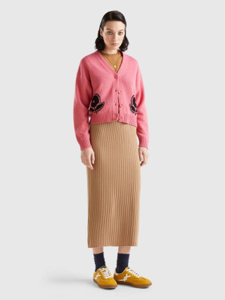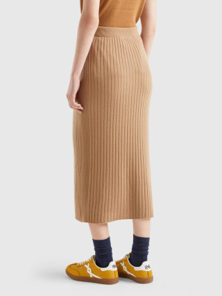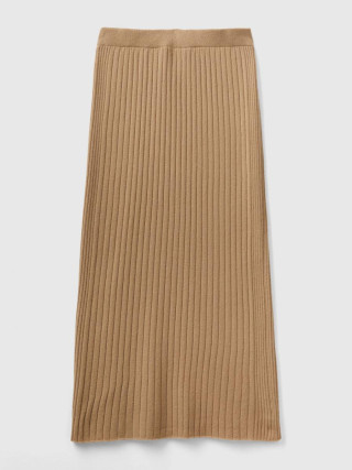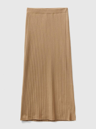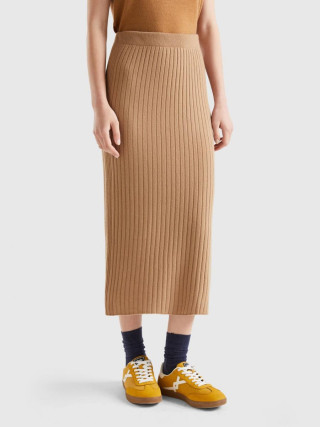 Benetton ženska pencil suknja od meke vunene mešavine. Posebno široko rebrasto pletivo, unutrašnji elastični pojas i tanke rebraste stranice. Bezvremenski klasik.